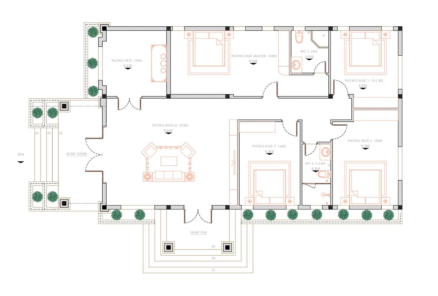 Mẫu thiết kế nhà vườn mái Thái hiện đại 4 phòng ngủ 8x16m | BG269