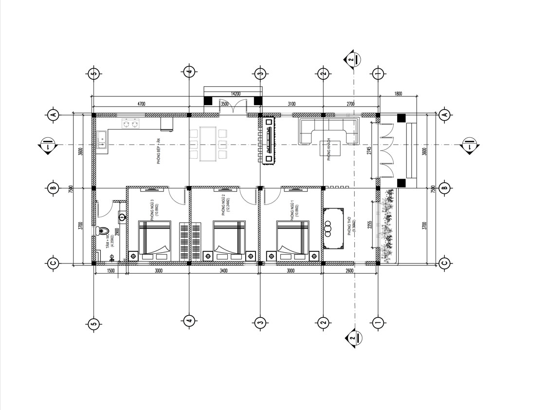 Nhà cấp 4 mái Thái 3 phòng ngủ 7,5x14m | BG312