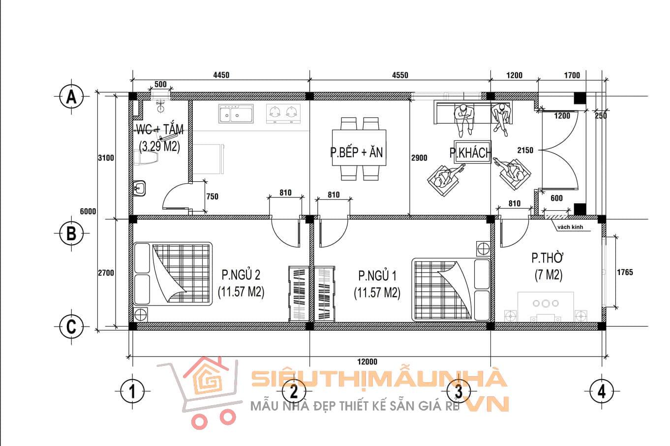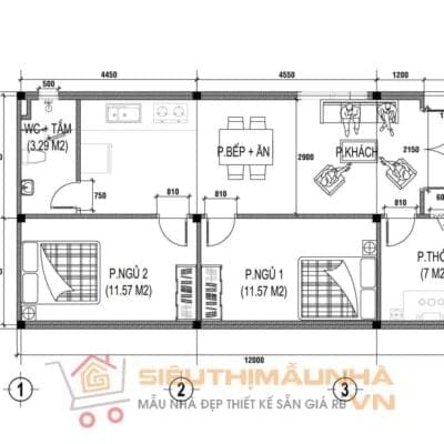 Nhà mái Thái 2 phòng ngủ 6x12m | BG279 + Dịch vụ điều chỉnh kích thước theo yêu cầu (25.000đ/1m2)