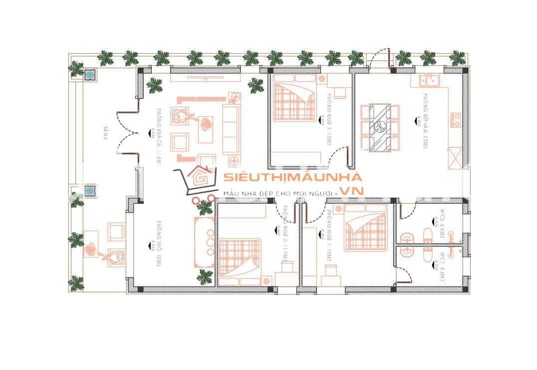 Nhà vườn mái Nhật đẹp 3 phòng ngủ kích thước 9,9×16,6m | BG258