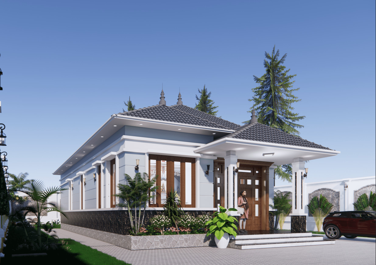 Nhà vườn mái Nhật hiện đại 3 phòng ngủ đẹp kích thước 8x14,5m | BG386